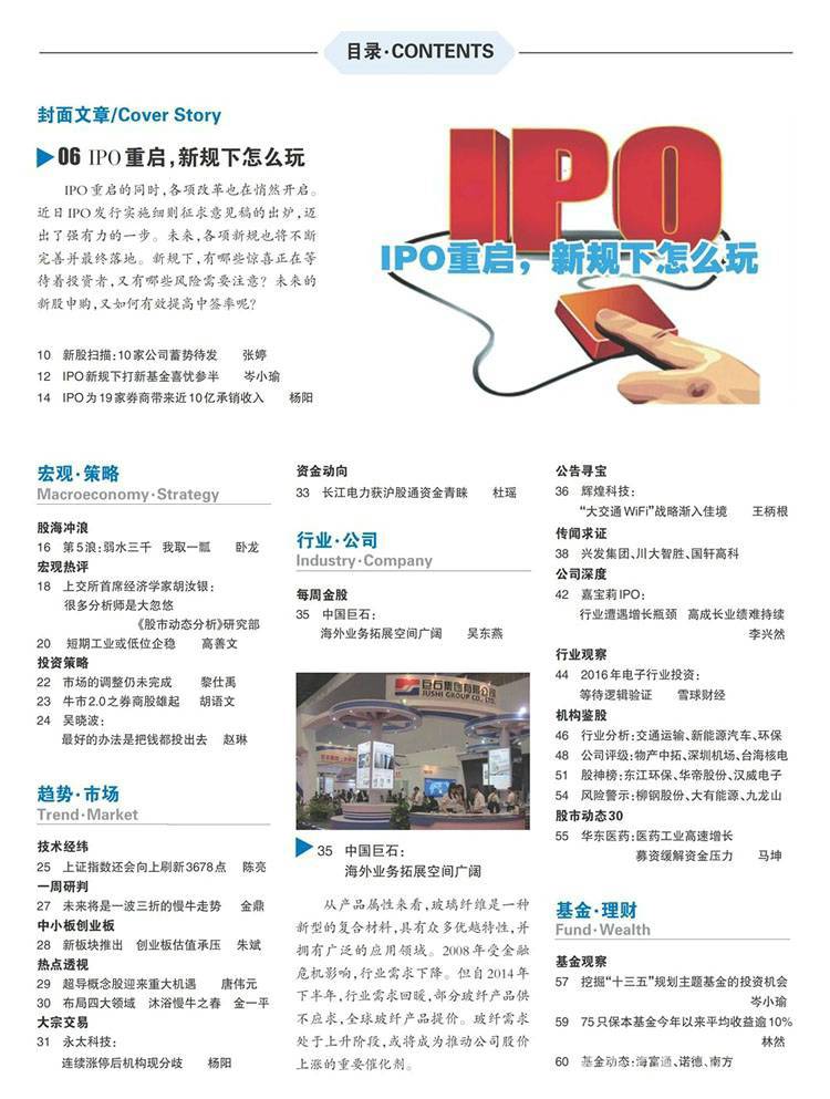 二十年来,杂志在证券知识普及与传播、正确投资理念的灌输与 介绍方面做了大量开创性的工作,是多种古典与现代证券分析理论和 方法在中国内地的介绍者与传播者。