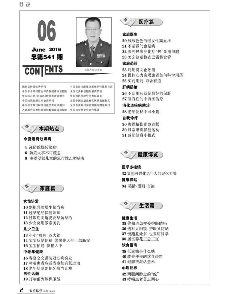 《家庭医学》主要栏目:本期热点、家庭篇、医疗篇、健康博览、生活篇、养生篇、医患健康桥。