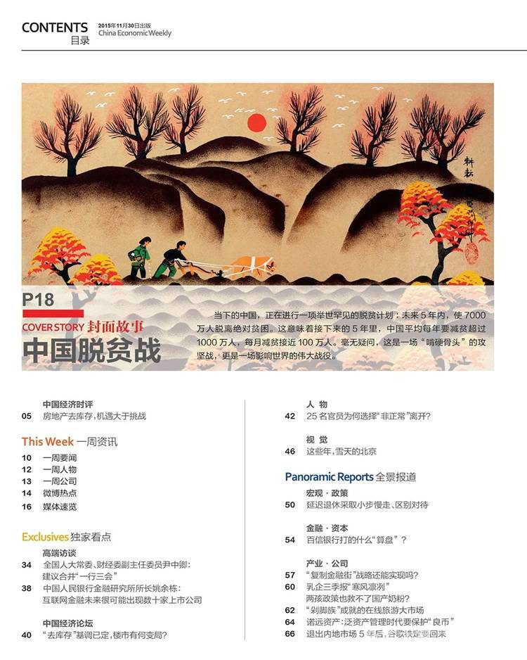 《中国经济周刊》以体制经济为核心的宏观经济、以城市经济为核心的区域经济、以企业经济为核心的产业经济、以金融为核心的财经领域。